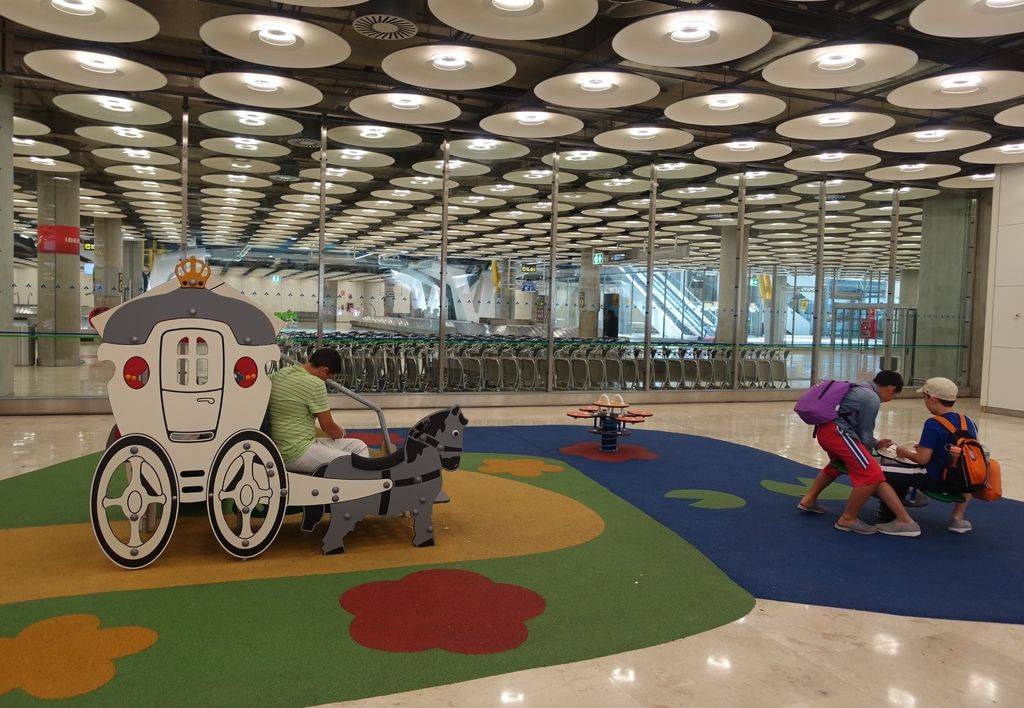 馬德里機場的行李推車要投幣很不可取,但行李提領區旁設了這個兒童遊戲空間(老兒童也可以玩喔),讓家長們覺得很不錯。
