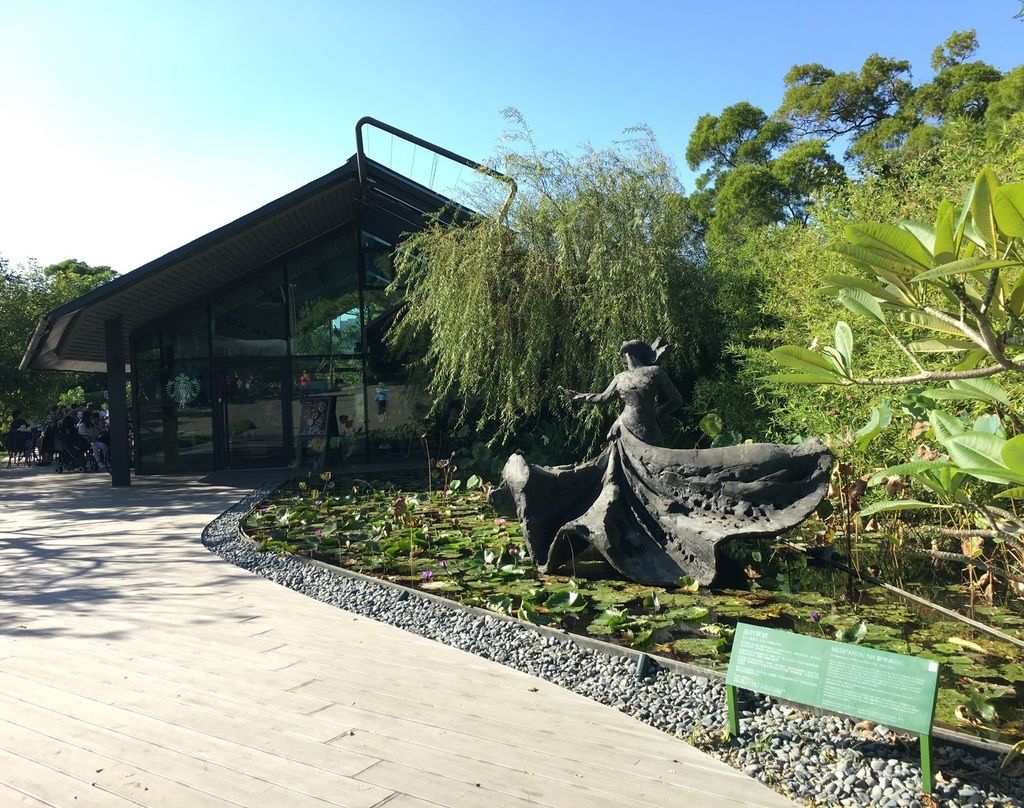 蓮花池擺放「旋的冥想」大型雕像,紀念知名雲門舞者羅曼菲的永恆舞姿。