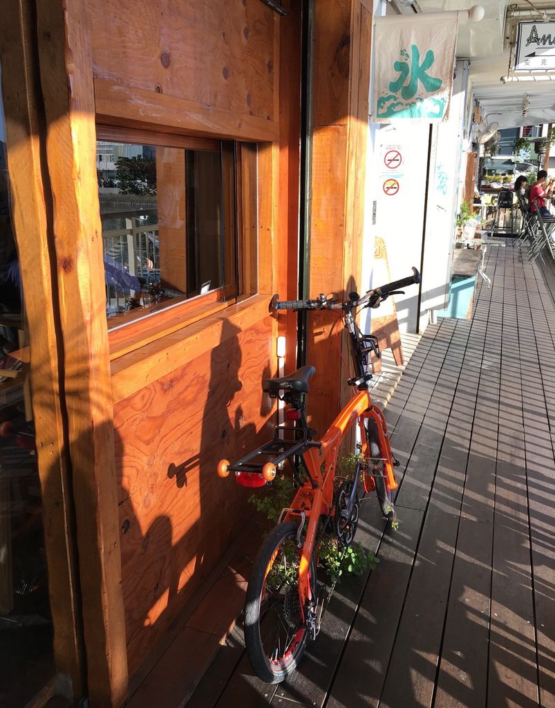 小橘停在牆邊,乖乖等我們吃完冰。